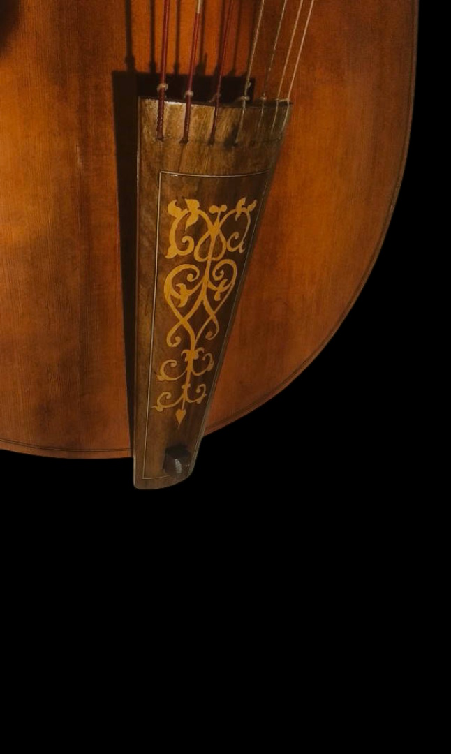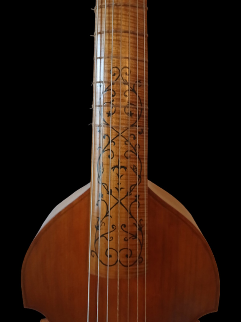 Cordier marqueté noyer / érable. Le dessin a été réalisé par mes soins, inspiré par une gravure de "L'harmonie universelle" de Marin Mersenne.